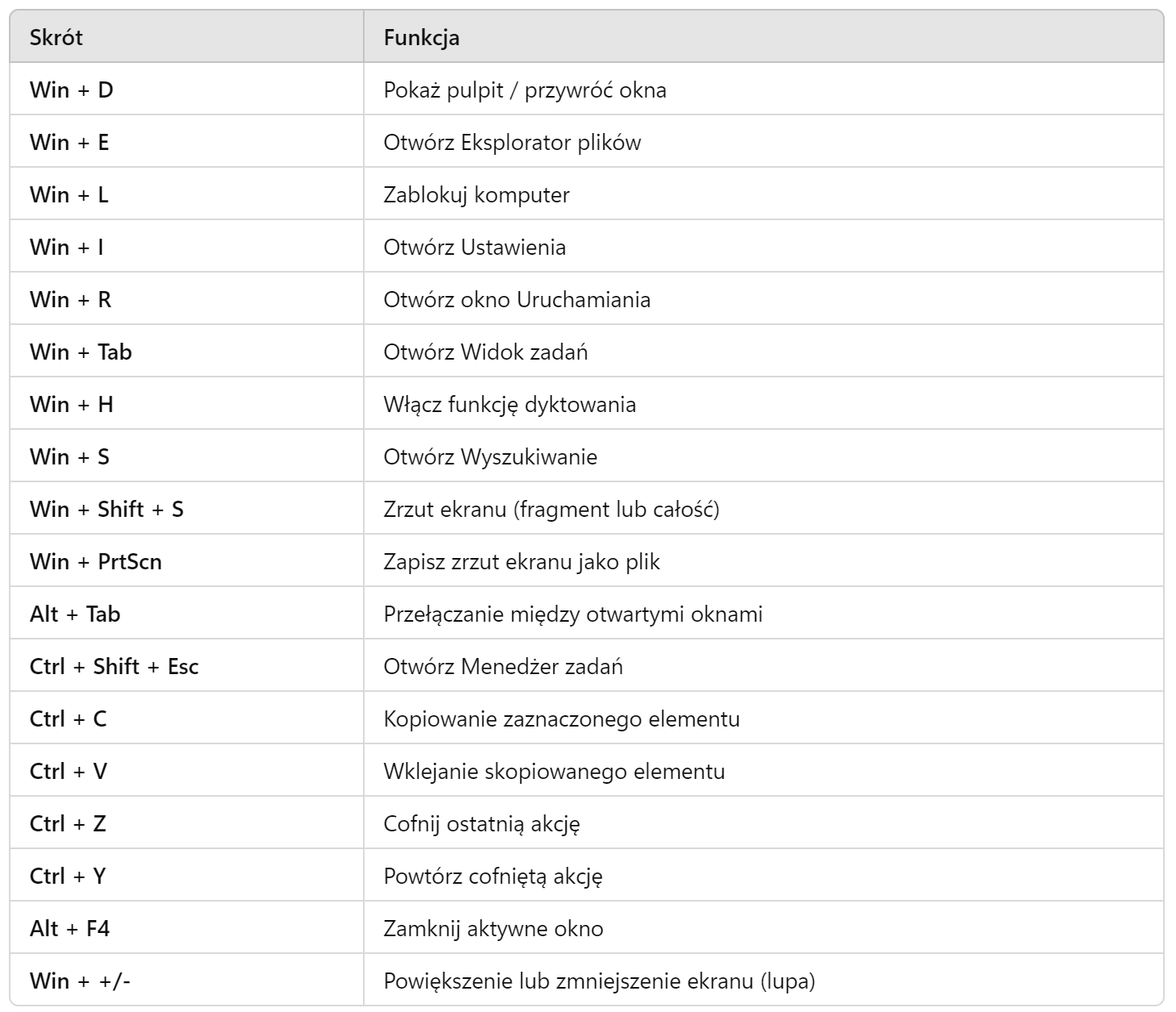 1. Skróty klawiszowe dla Windows